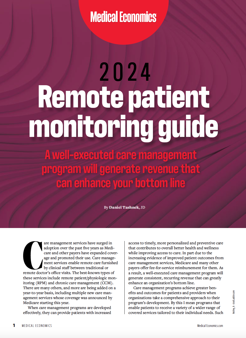 How does it actually work? Daniel Tashnek, JD, is the author of “2024 Remote patient monitoring guide.” Click on the cover of the guide at right to view it as a PDF file. His primer on care management programs has definitions, explanations about the four most common patient cohorts that could be covered, and dollars-and-cents examples that physicians can use in their research about adding such services to their practices.